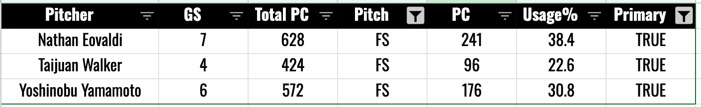 SPLITTERS! Only three starters are throwing their splitter as their primary pitch:
