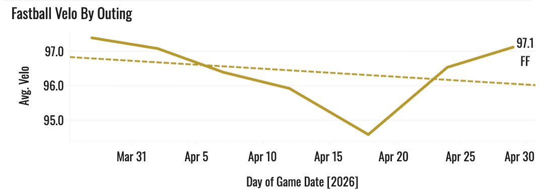 The guy has a four-seamer with 97.7mph of effective velo (velo adjusted for release point so we can adjust for how quickly it’s getting on the hitter):