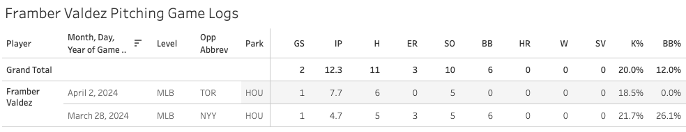 2. Framber Valdez: 85 Pitches, 22 Outs, 3.86 POUT