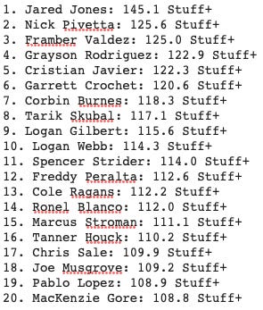 The FanGraphs Stuff+ on him is 120.6. According to FanGraphs, that’s
