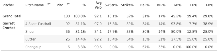Garrett Crochet's FC usage (19.4%) up 17.3 points