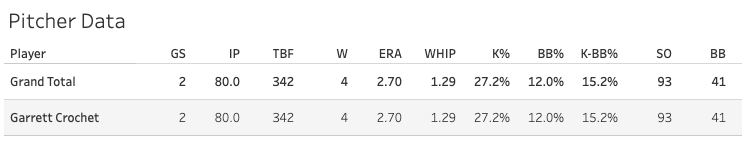 A look at Crochet’s career marks (since 2021, but he missed the 2022 season):