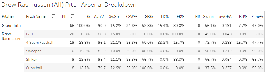 2. Drew Rasmussen (TB): 15.2 SwStr%, 34.8 CSW%