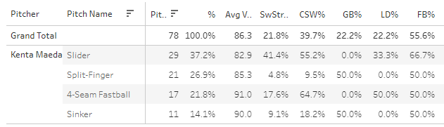 1. Kenta Maeda (MIN): 21.5 SwStr%, 39.2 CSW%