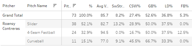 Roansy Contreras's SL usage (48.7%) up 14.5 points