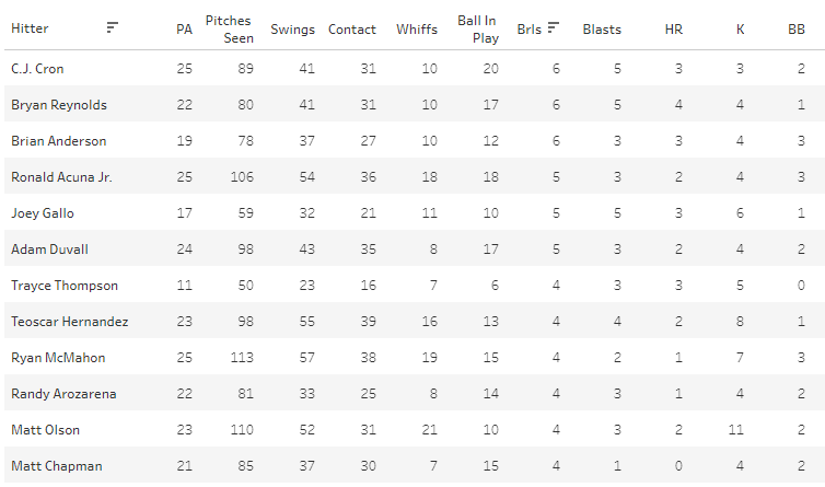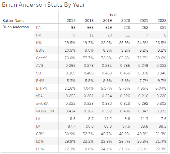 Brian Anderson (MIL) 4 PA, 10 Swings, 3 Barrels, 2 HR