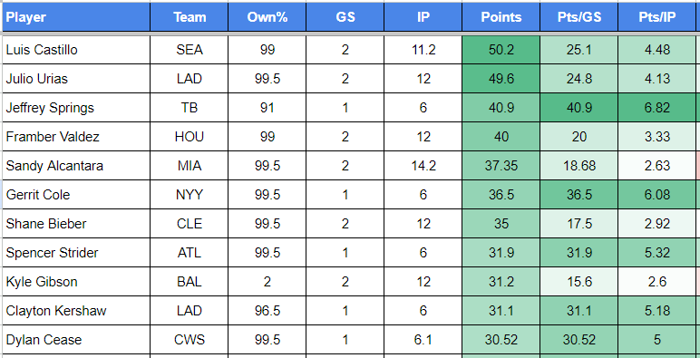 10. Shane McClanahan (TB) - 1.0 GS - 50.83 JA Points
