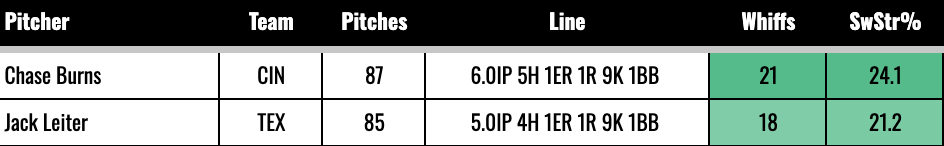 Chase Burns and Jack Leiter made their cases again yesterday. Massive outings for both dudes.