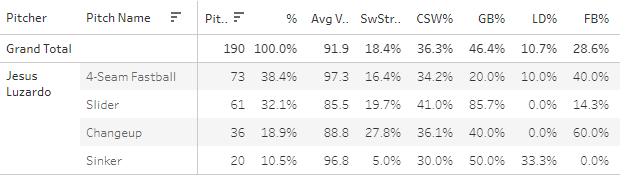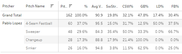 Pablo Lopez's SI usage (19.3%) up 10.3 points