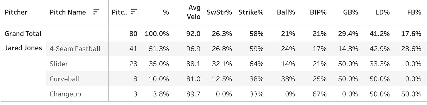 Luckily we got that Jared Jones data though, sheesh! Another amazing start for him.