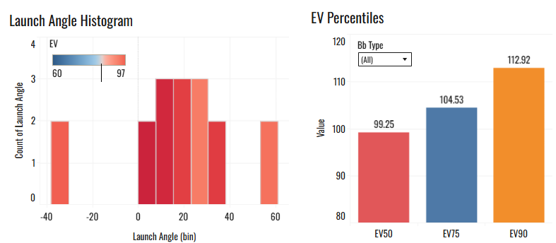 24% K%, 16% BB%, 19.2% Brl%, 47% Swing%, 80% Z-Cont%, 42% GB%