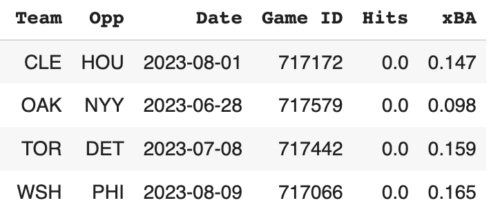 The Athletics went for just a .058 xBA in that game and had the one lone hit.