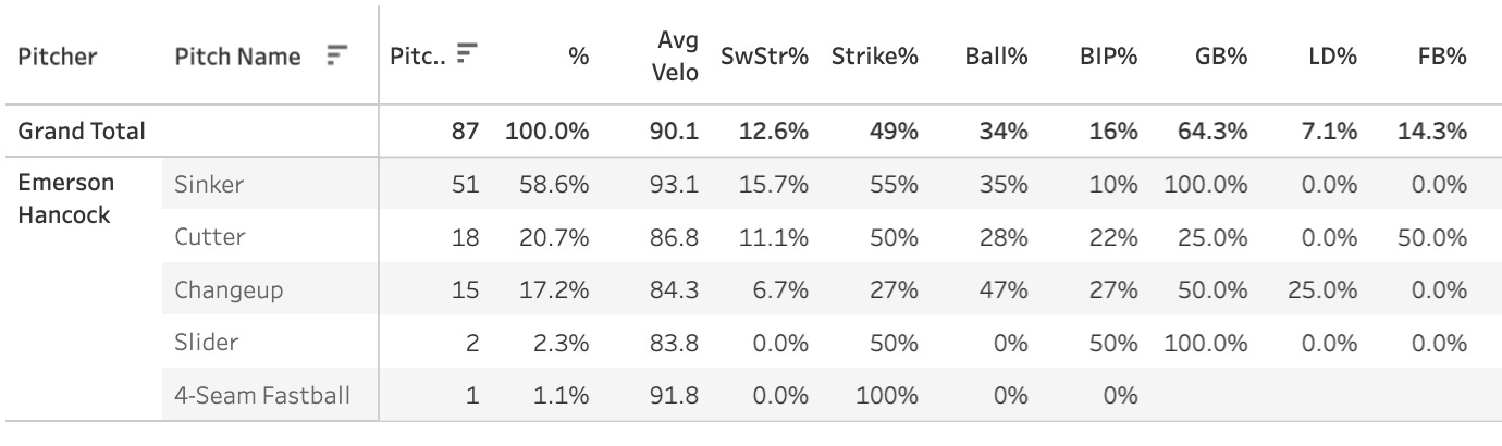 8. Emerson Hancock (SEA): 49.4 Strike%, 34.5 Ball%