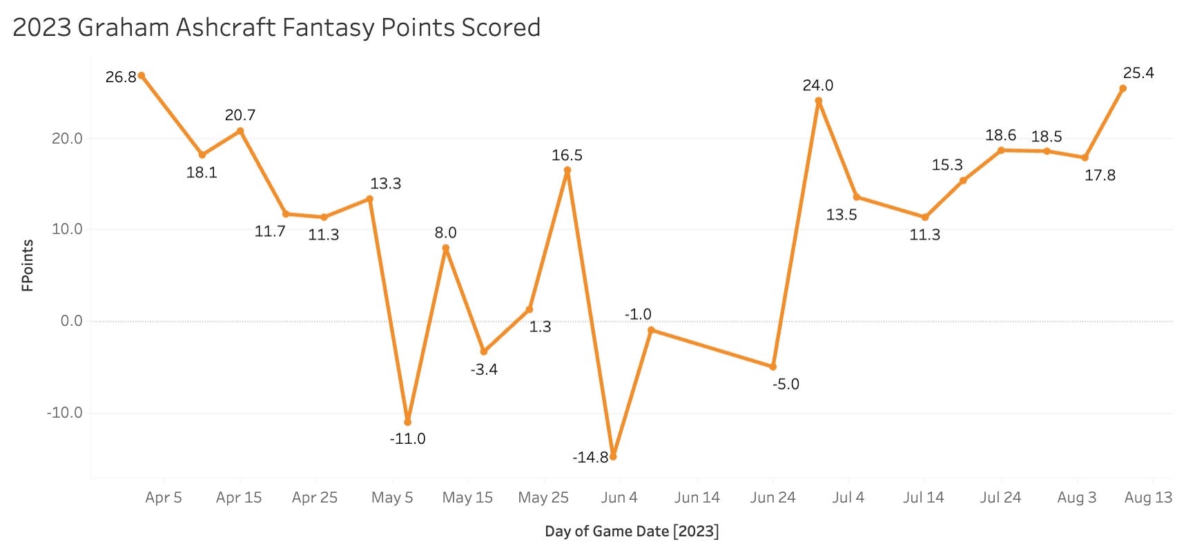 3. Graham Ashcraft (vs. MIA): 25.35 Points
