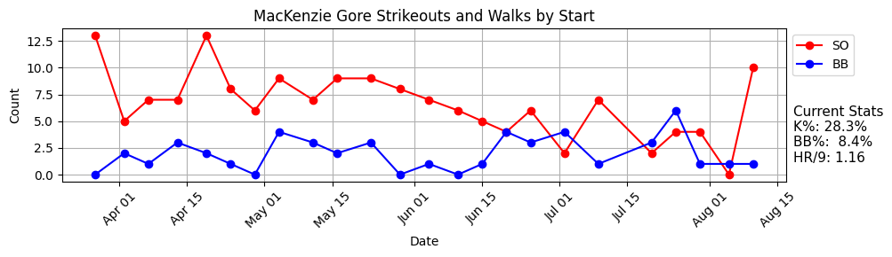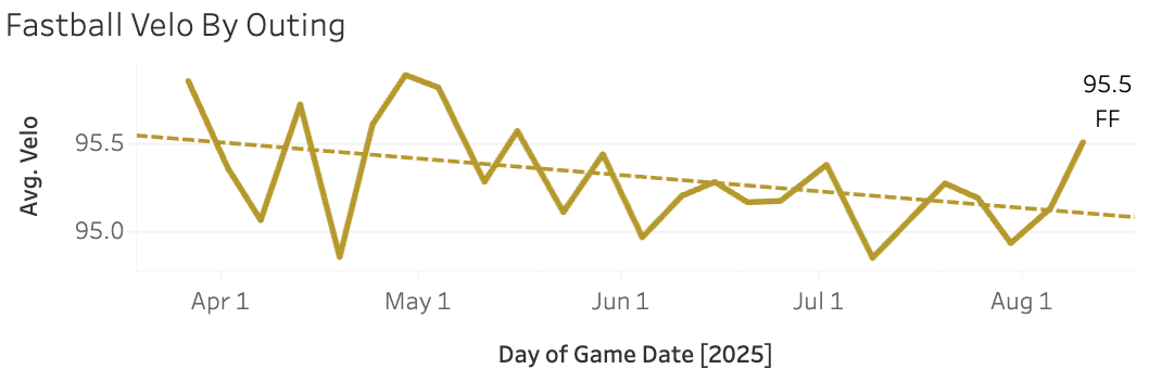 It’s another good reminder that we have to be very careful in reacting to small sample sizes. But man, it’s hard to think you did something wrong bailing on Gore during that stretch. The velo was down, the command was gone, the whiffs were down; everything looked like he was just hurt or tired out, and things were seemingly getting worse every time out.