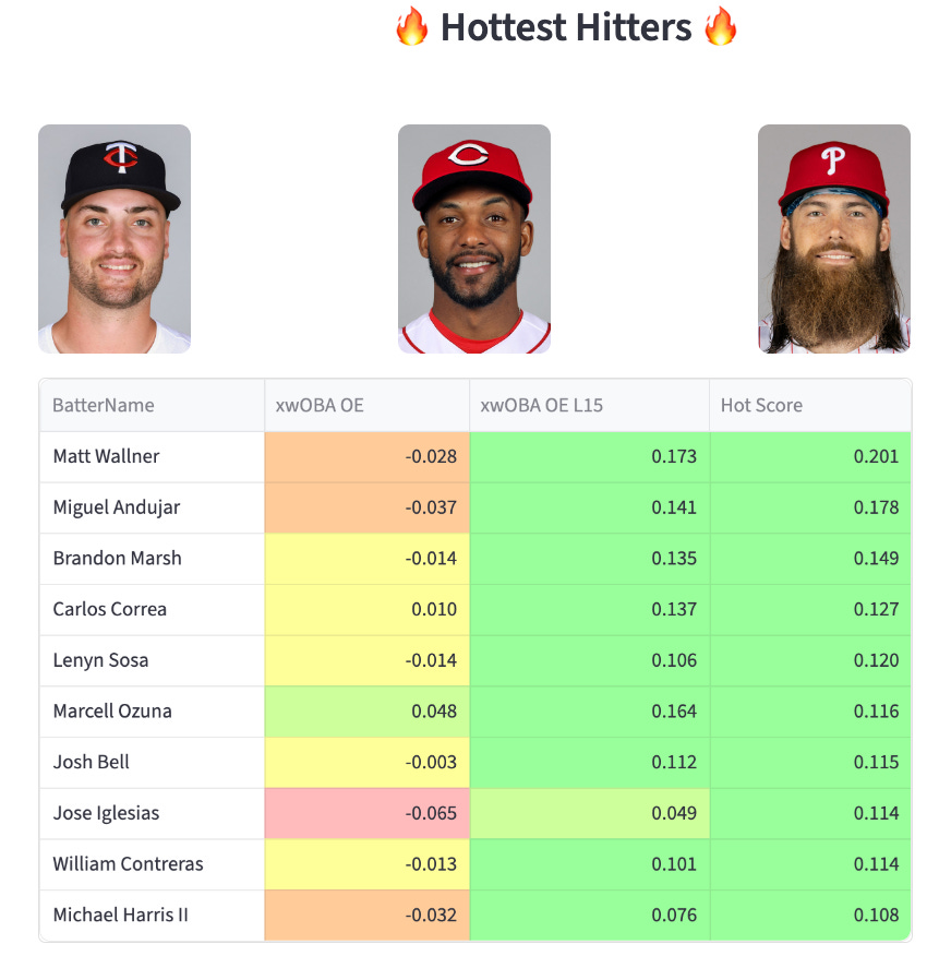 Your current hottest hitters, in the same way that we found Michael Harris weeks ago: