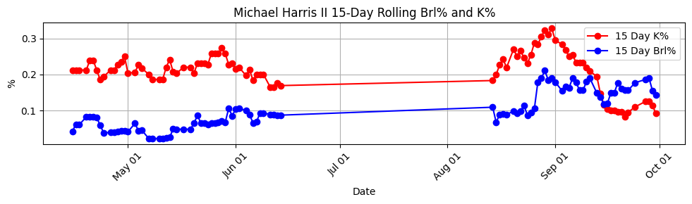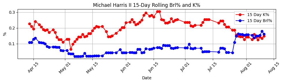Michael Harris II, man! I feel good about this one, because the trending players page on the Streamlit app was on him really early.
