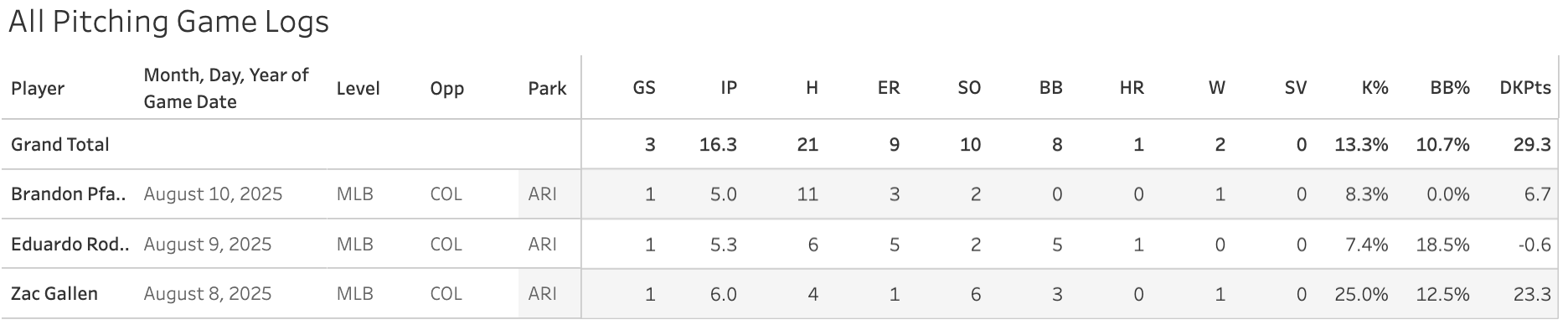 Brandon Pfaadt and Eduardo Rodriguez both failed the road Rockies matchup this last weekend.