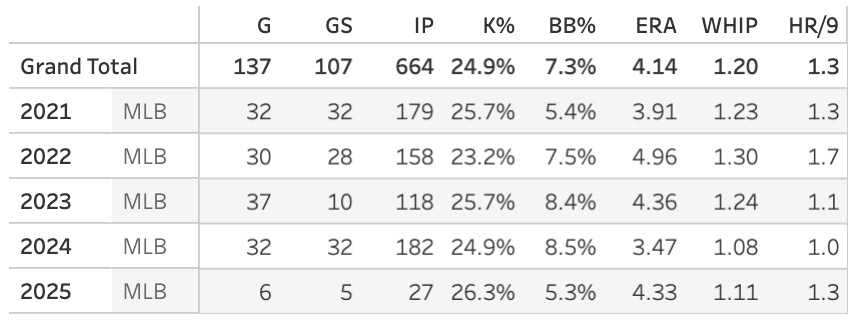 His 11.3% SwStr% doesn’t map to his 25% K%.