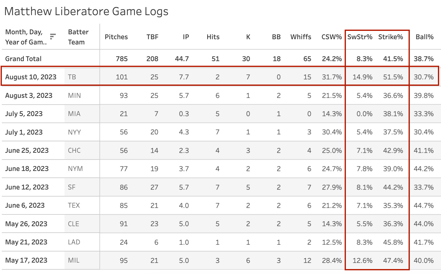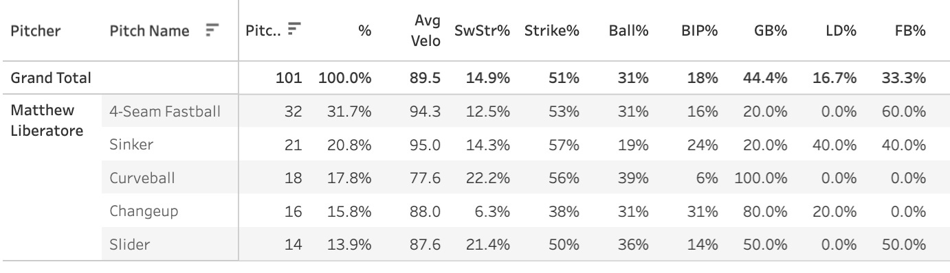 It’s hard to imagine that you can randomly pitch this much better, but it’s also hard to imagine that Liberatore is suddenly GOOD after what we saw from him in those first several outings.