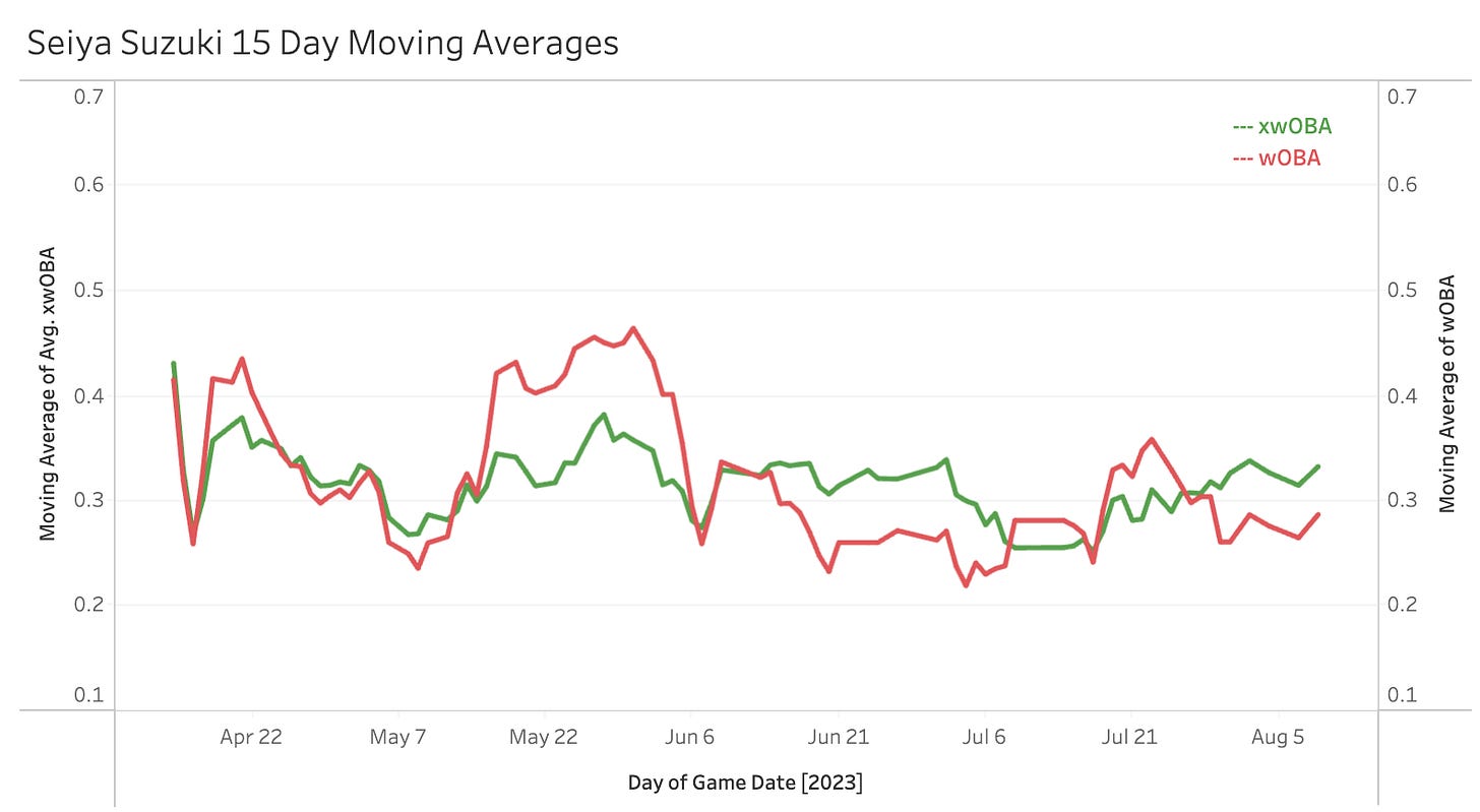 Seiya Suzuki - 58 PA, 0.293 wOBA, 0.347 xwOBA, 0.054 Diff
