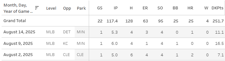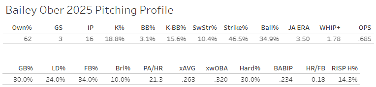 Bailey Ober has returned and has made three starts since going on the IL. Those three starts: