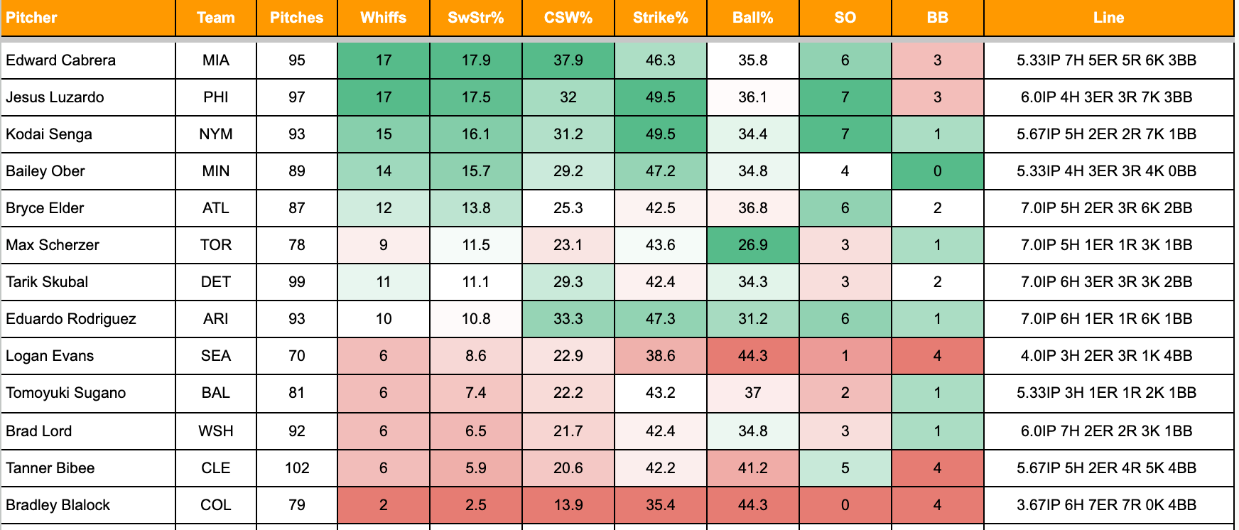 1. Edward Cabrera (MIA): 17 Whiffs (95 Pitches)
