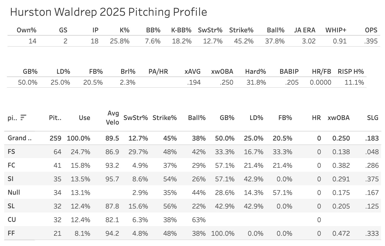 We must talk about Hurston Waldrep. He was the Braves first round pick in 2023, and they promoted him aggressively, but he hasn’t had MLB success to this point.