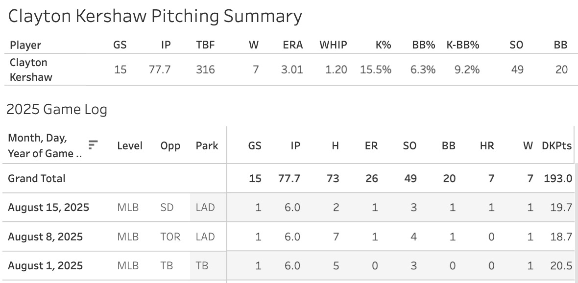 7. Clayton Kershaw (vs. SD): 19.7 Points