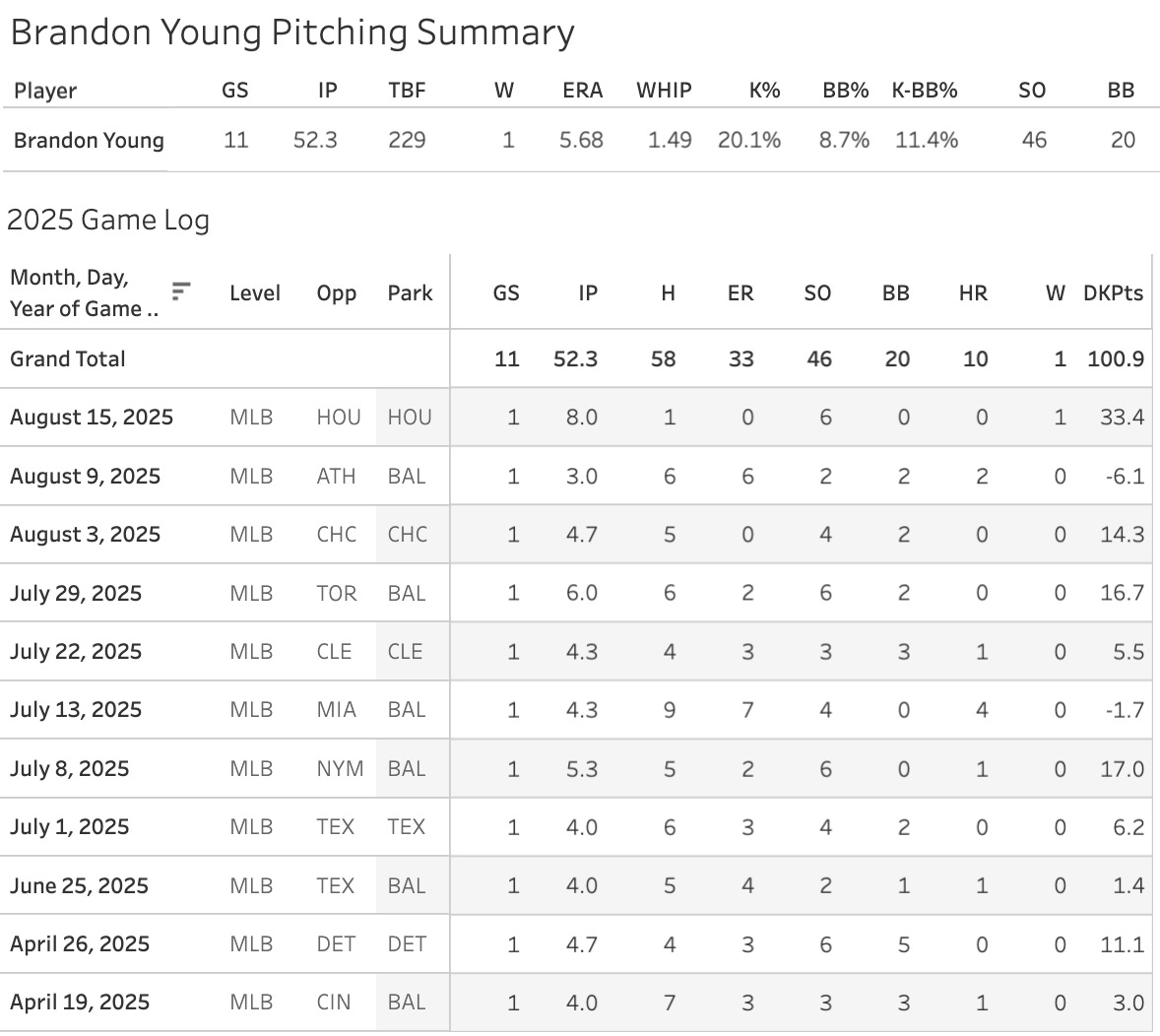 Brandon Young isn’t actually good. He has a 5.68 ERA with an 11.4% K-BB% this year. His JA ERA is at 4.00 (so he’s been pretty unlucky with that ERA, but he’s still not good).