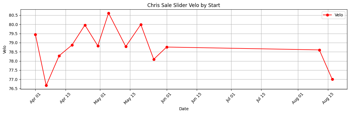 Chris Sale's SL velo (26 pitches) DOWN -1.9mph to 77.0