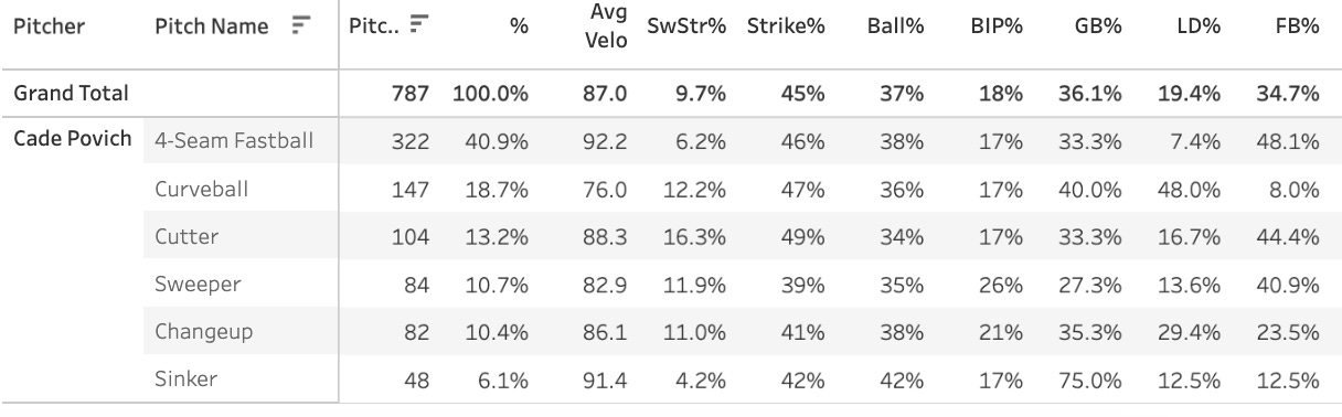 I don’t think it’s going to happen this year for Povich. I think the upside is SP3 or something, and he’ll have to get it done with craftiness rather than stuff. Kyle Hendricks style (when he was good).