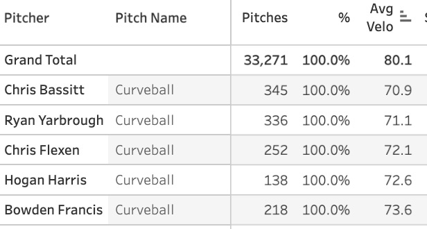 Slowest Curveball Velocity