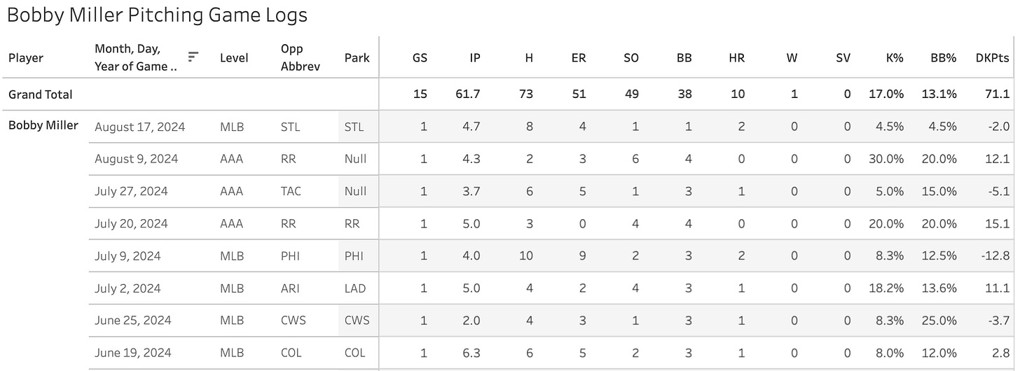 Bobby Miller returned to the Majors: