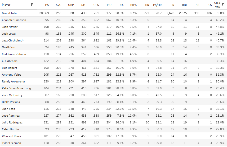 Ramon Laureano - 115 PA, -7.7 K%