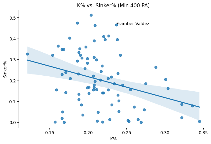 I was curious about if there is some relationship directly between sinker usage and overall strikeout rate. The answer is that there’s some signal there, but very little: