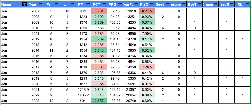 I have been keeping fantasy sports-related data in Excel spreadsheets for a very long time.