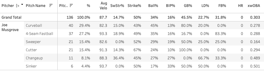 Joe Musgrove is back at it and had an encouraging start yesterday: