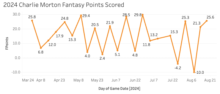 Those are encouraging numbers with the 14.7% SwStr%, 34% Ball%, and the 46% GB%. I have long liked Musgrove and have thought he’s underrated for fantasy purposes. That’s certainly true now, given that we haven’t seen much of him this year, but if you have Musgrove - I think you’ll be pleased with what he gives you down the stretch.
