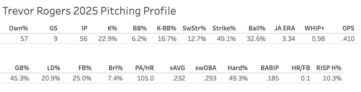 Trevor Rogers's FF usage (45.5%) up 11.3 points