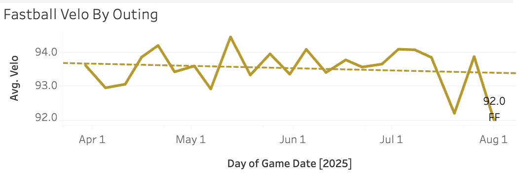 Season-low 92.0 there, and he kept the usage on the pitch down as he has been lately.