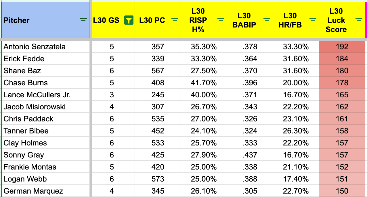 And here are your pitcher magic formula Q’s. We like SwStr% >= 13% and Ball% < 33%:
