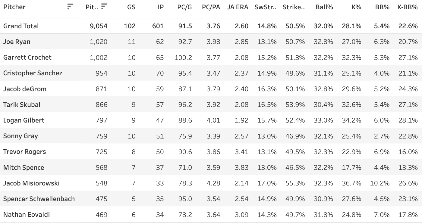 1. Trevor Rogers: 88 Pitches, 24 Outs, 3.67 POUT