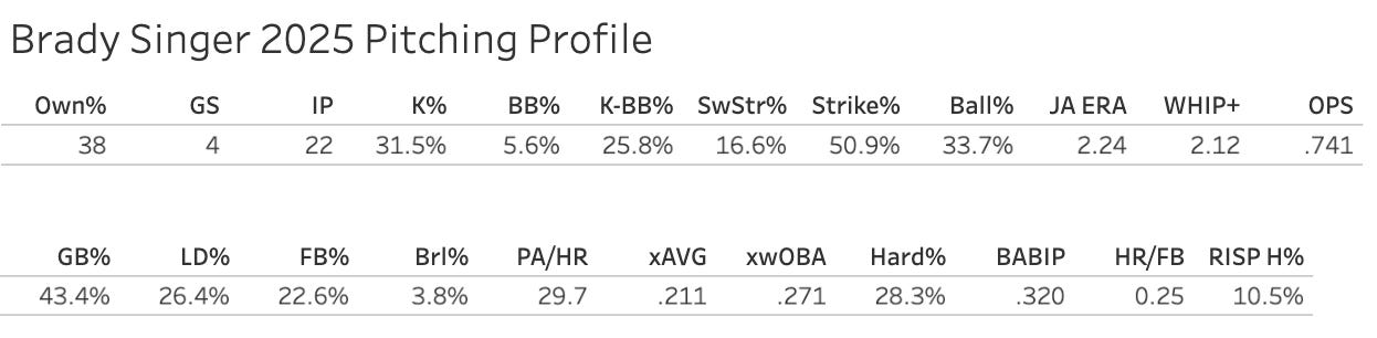 Are the Braves a good team to stream against with Acuna out of the lineup? Maybe that’s the question coming out of that Singer game yesterday. Going back to June 1st: