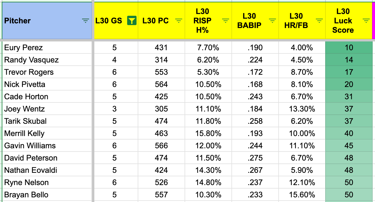 Nick Pivetta's CU usage (29.2%) up 10.3 points