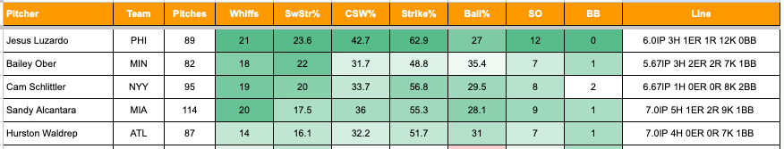 1. Jesus Luzardo (PHI): 21 Whiffs (89 Pitches)