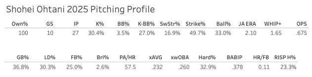 6 G, 29.1% K%, 7.9% BB%, 2.76 JA ERA, 1.93 WHIP+, 12.6% SwStr%, 35.9% Ball%