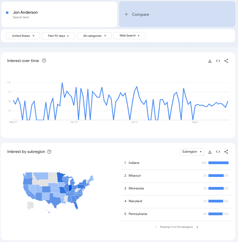 That’s actually funny that the leading state is Indiana. Is the lead singer YES guy from Indiana?