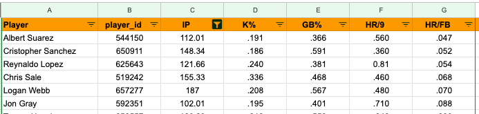 I want to stay positive on Lopez after this great return, but I have to mention once again the flyball and home run stuff - especially since we generated that data yesterday. He has the third-lowest HR/FB in the league (pitchers with at least 100 innings):