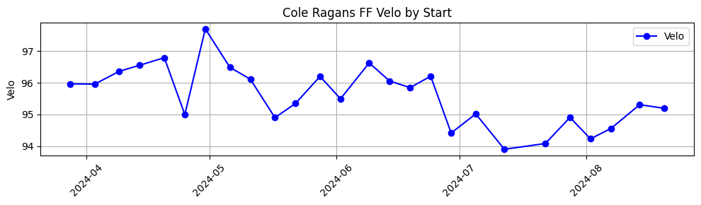 But the 18.6% SwStr% and 52.6% Strike% was great. Keep starting Ragans, obviously, I don’t even really need to mention him here - but we have been keeping an eye on the velocity for awhile now, so we’ll hit that again: